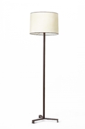 Jacques Adnet pair of tripod black hand leather standing lamps.