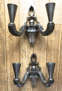 Genet Michon rare refined pair of solid silvered bronze sconces.