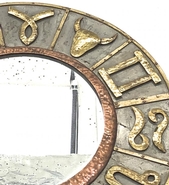 French riviera zodiac sign vintage mirror in iron and copper oxidized design.